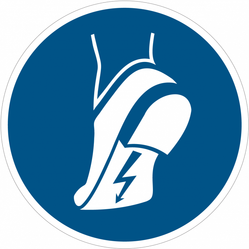 Pictogramme indiquant l'obligation de porter des chaussures antistatiques.